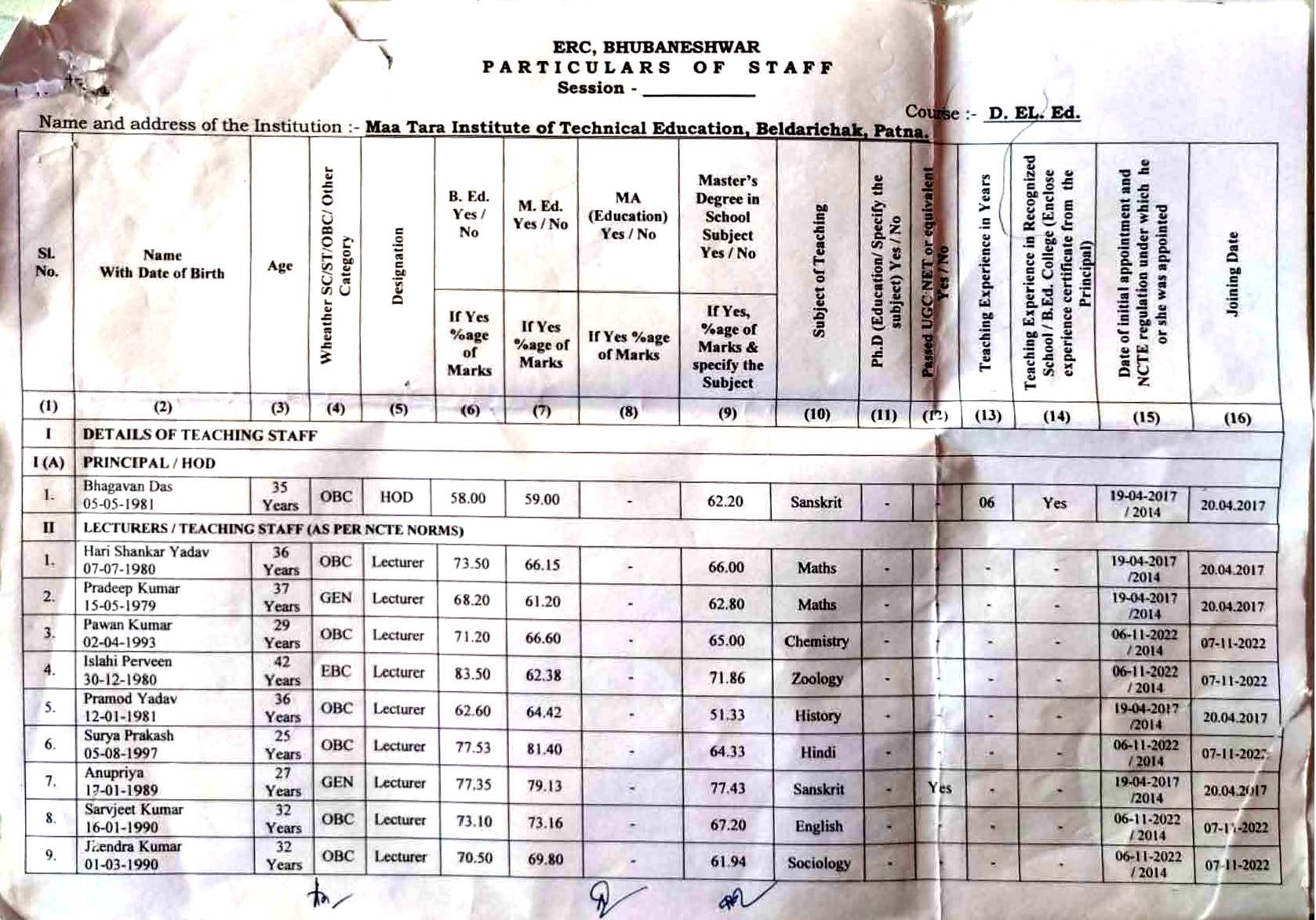 LIST OF D.EL.ED FACULTY